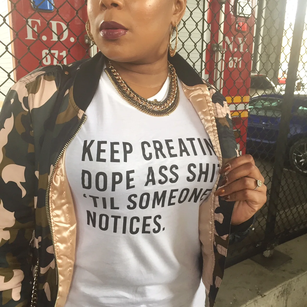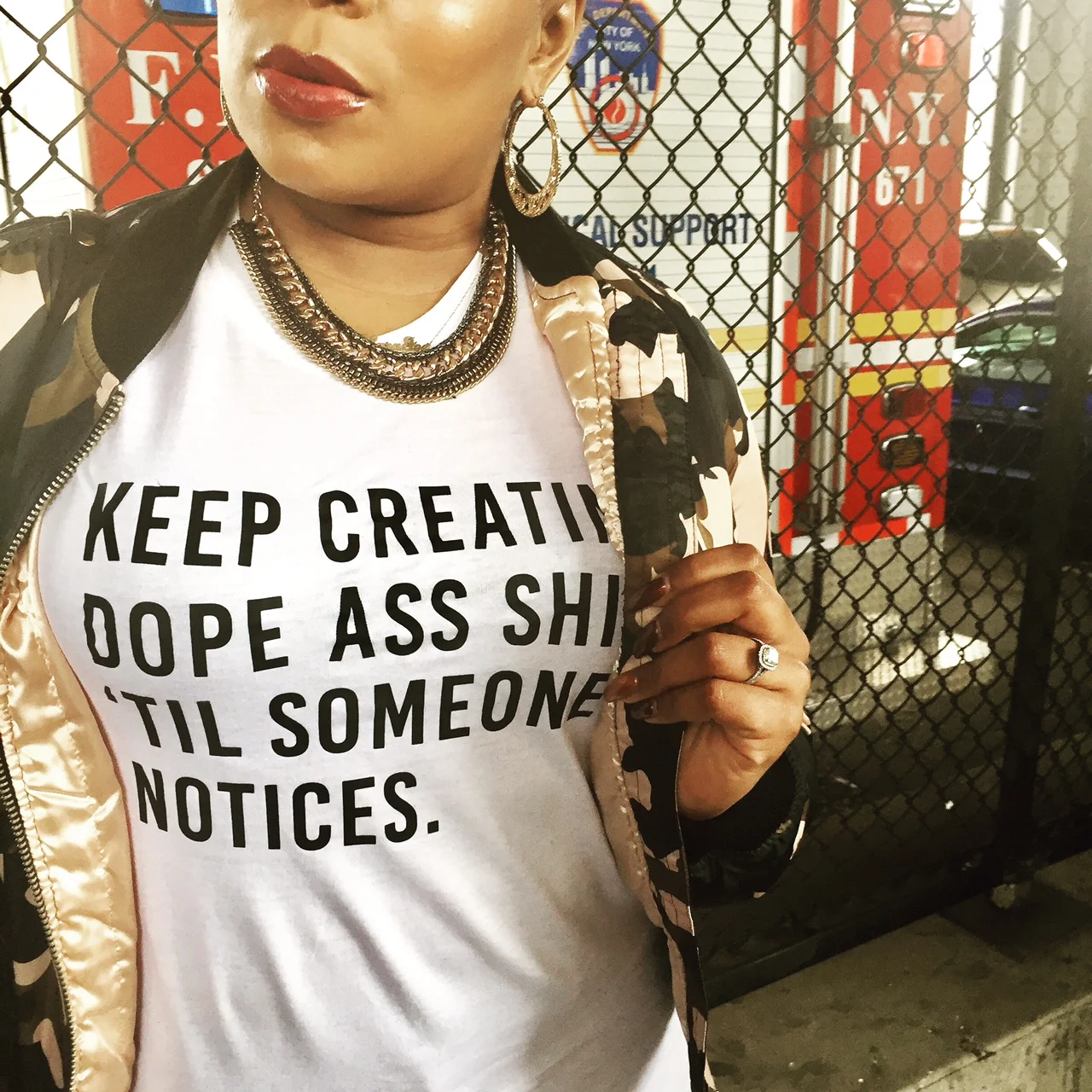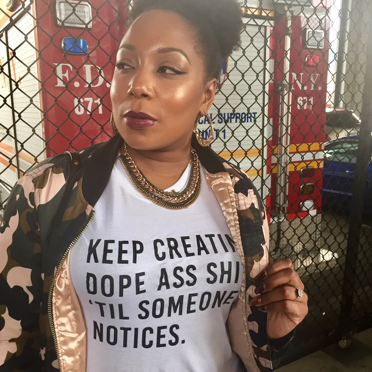 I wore this look in NYC at BeautyCon. It's something about NYC that brings out Urban Chic (da street) Vibes in me. When I came across this tee from one of my favorite small biz companies I had to get it. For one, the MESS-age speaks to my spirit right now. And two, I had to support my girl, Kalilah Wright of MESS IN A BOTTLE. We first met at a conference this past summer and she is just as dope as her art. 'Tis the season to support small businesses. Black Friday is upon us but small business Saturday is just as important.
