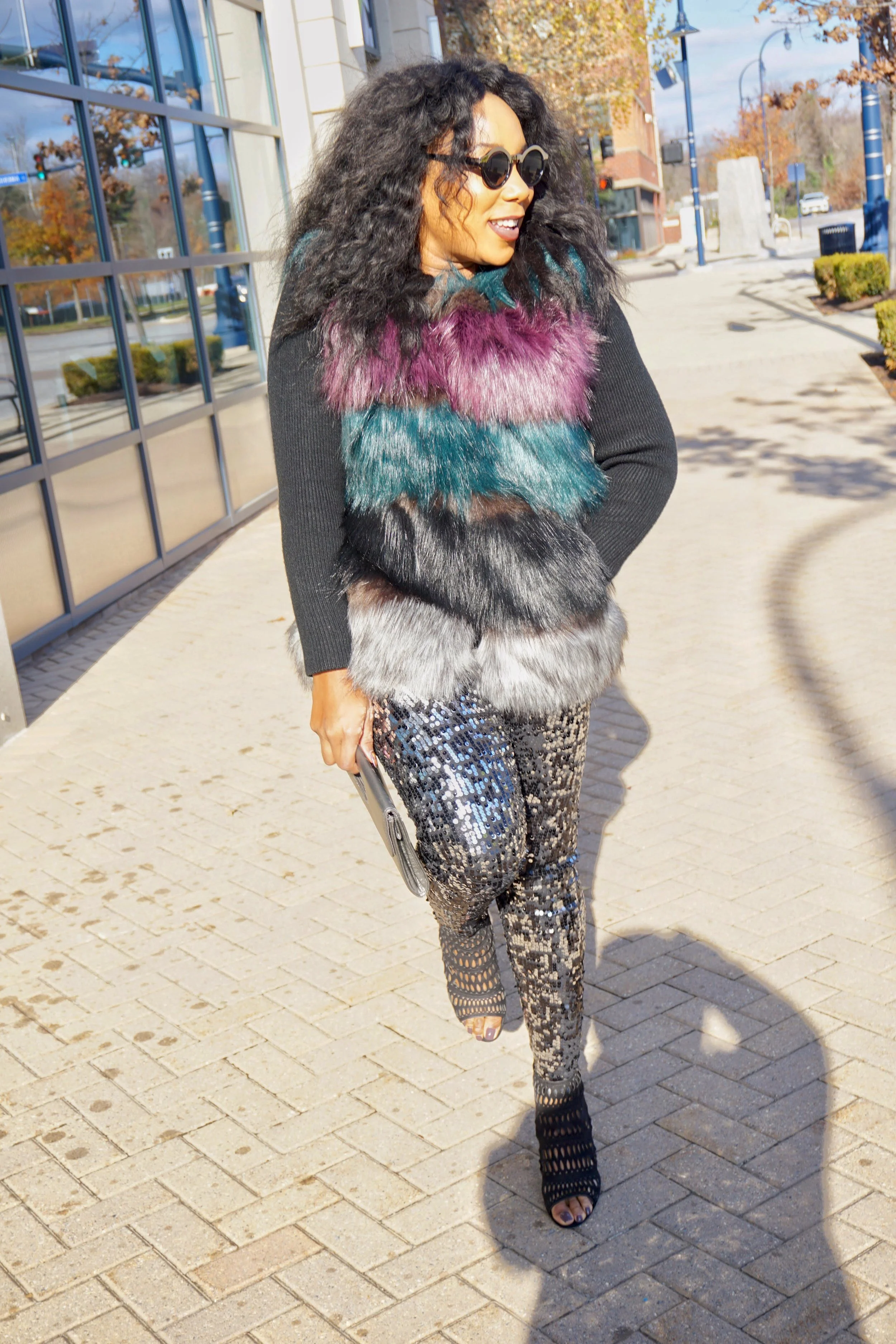 There is nothing like sequins and faux fur to get you in to the holiday spirit. Whenever I see sequins, metallics, something shiny on ANYTHING it makes me smile.