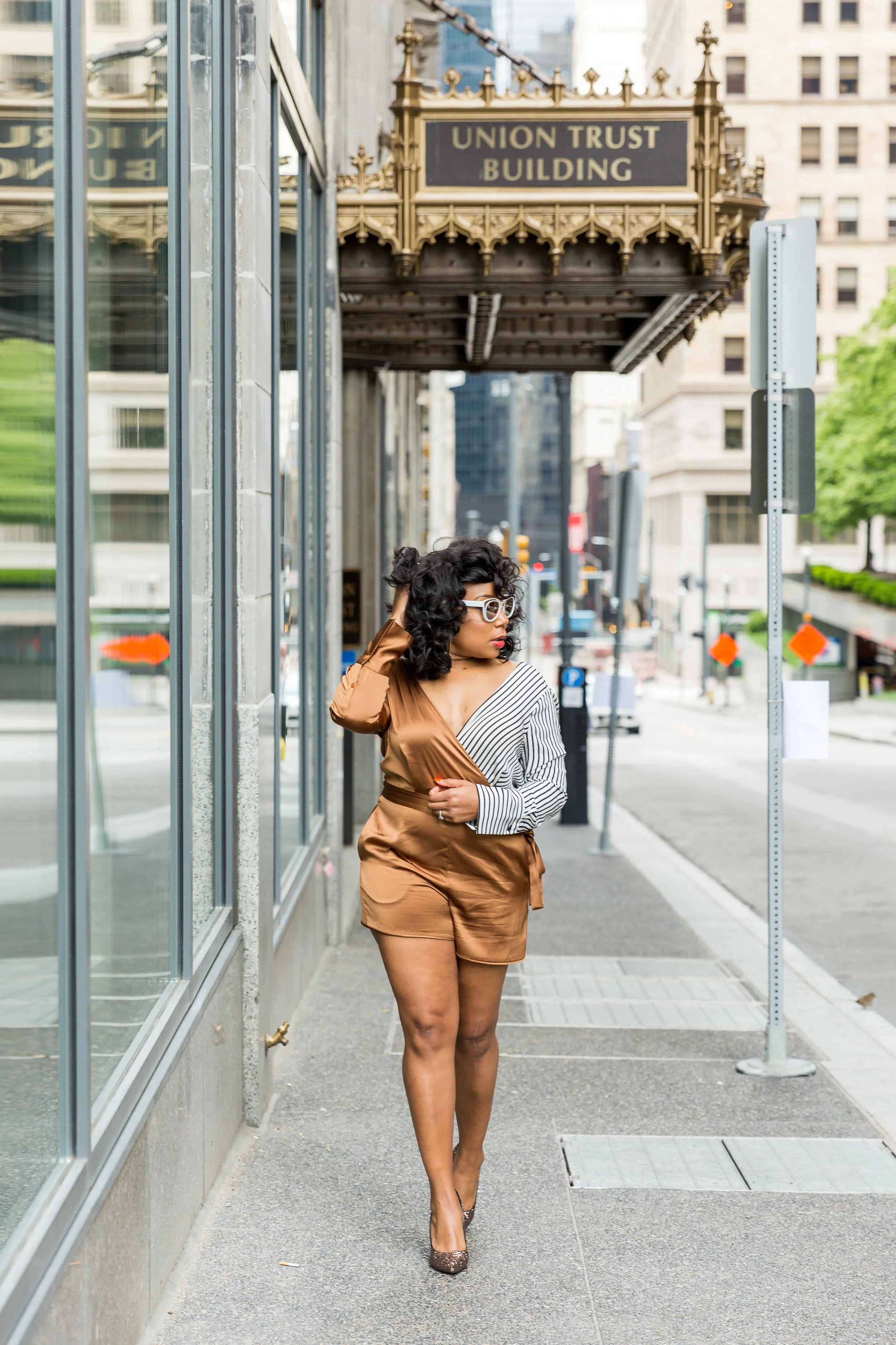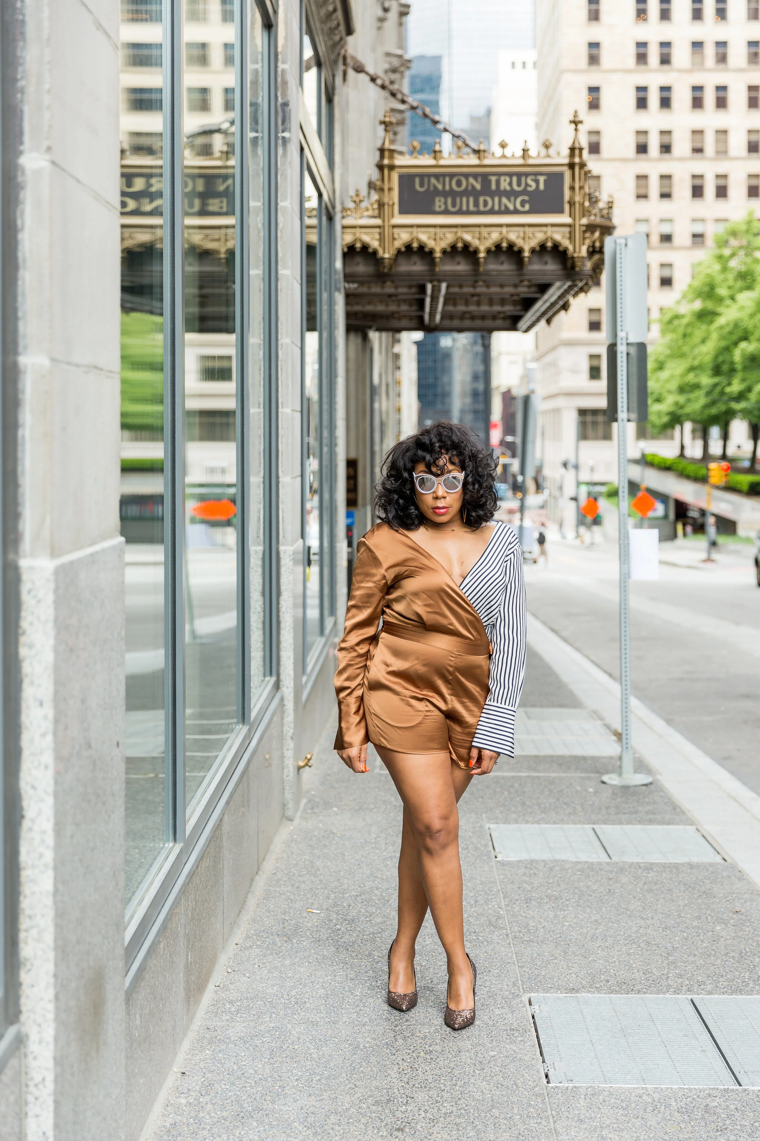 #myRTR : Rent The Runway Gold Striped Colorblock Romper