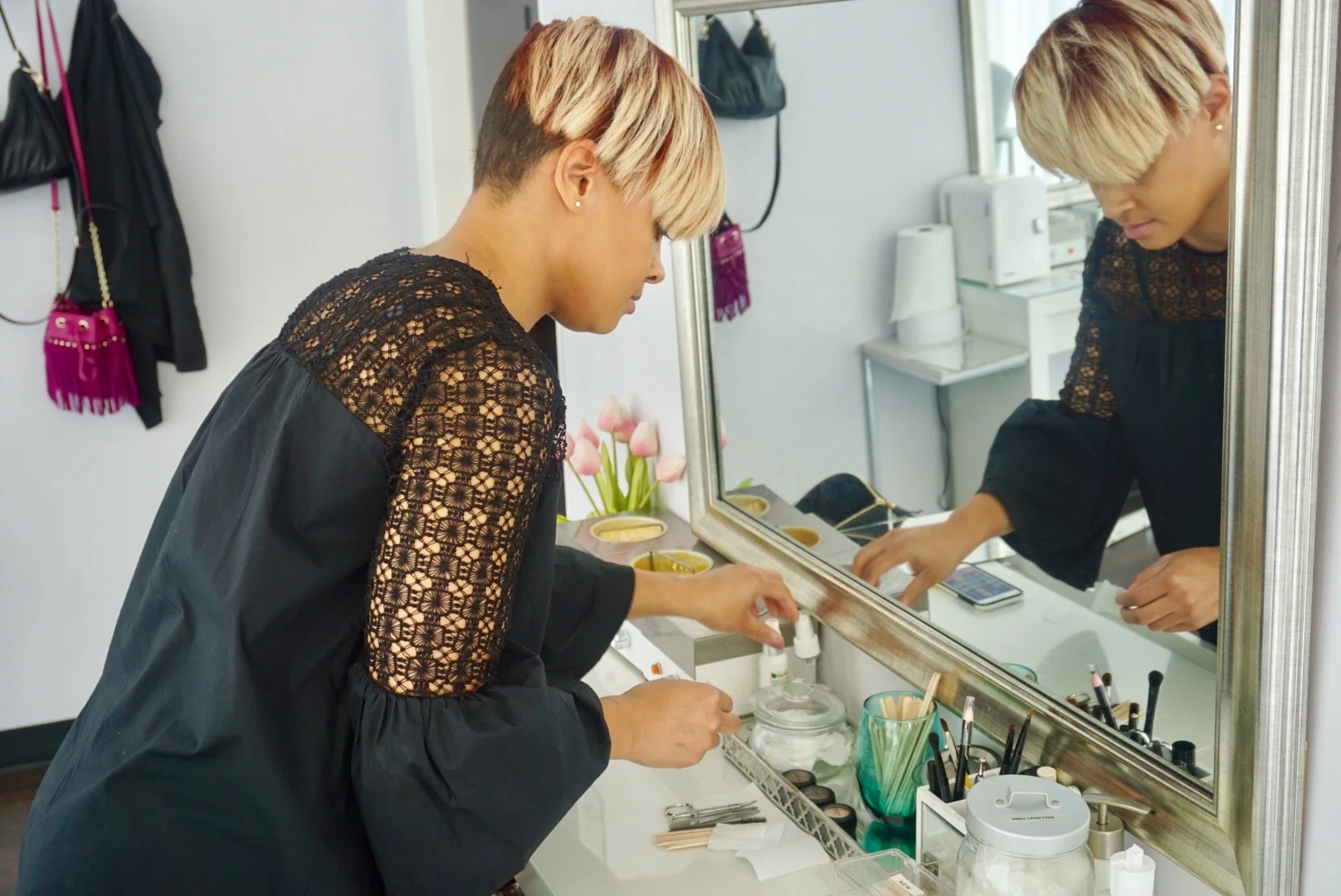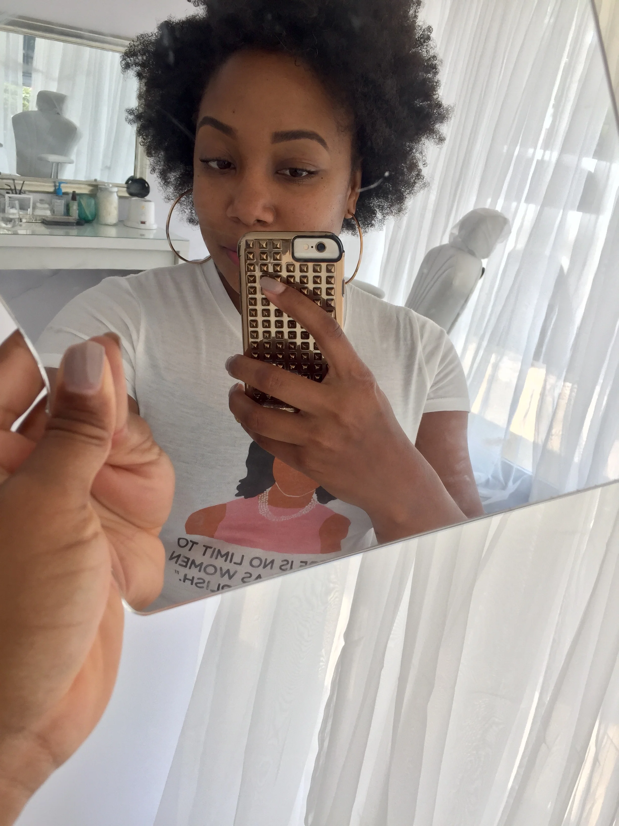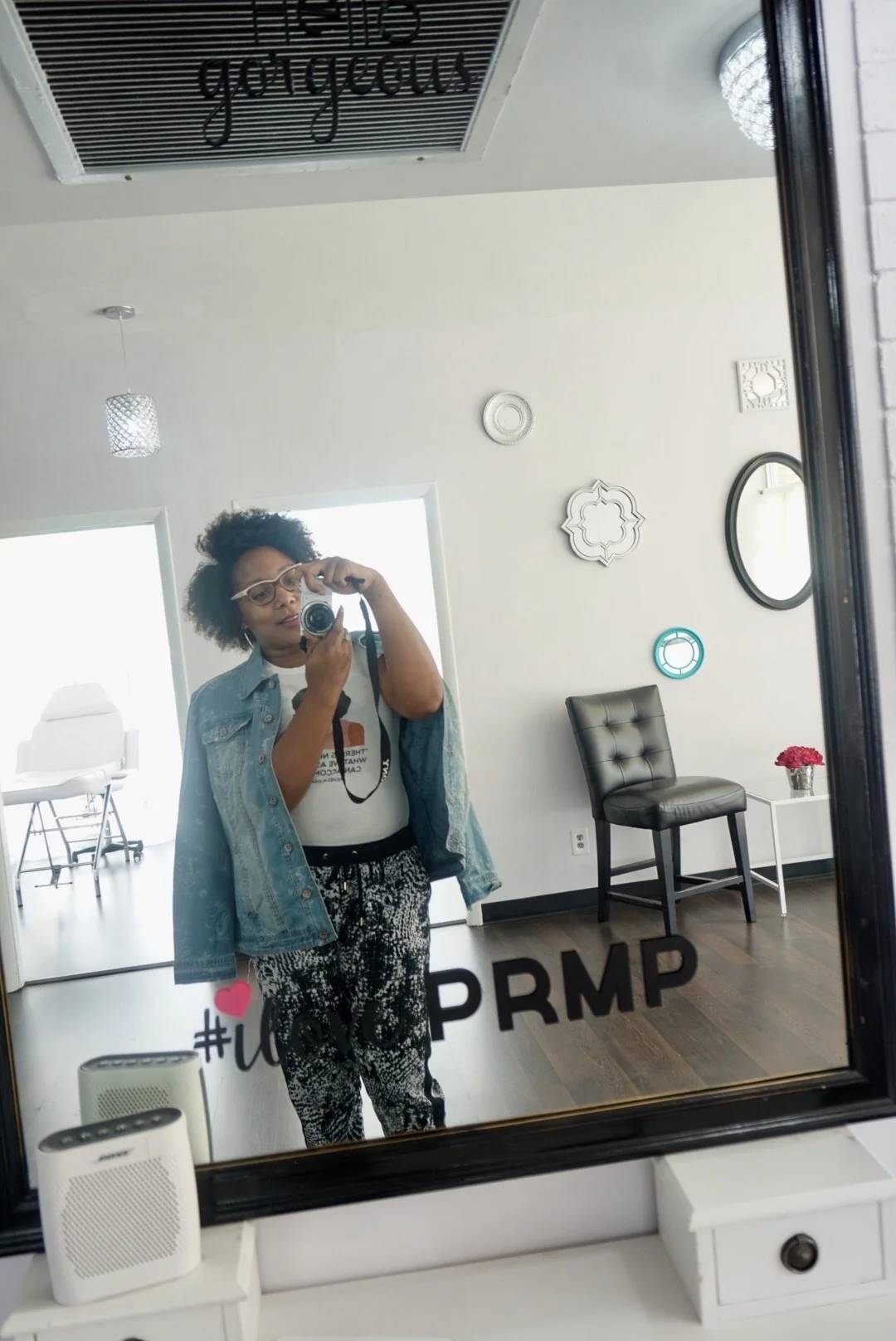 The space is really beautiful with a lot of white, fresh decor and windows that brings in so much natural lighting. The selfie station is one of my favorite areas in the studio. She has the perfect selfie light.. DUH!